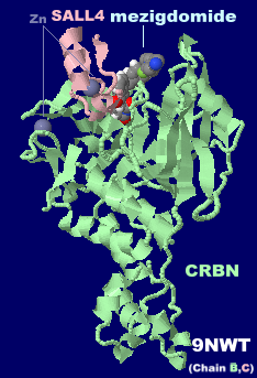 分子糊分解剤メジグドミド(mezigdomide)が結合したDDB1dB:CRBN複合体から9nwtのChain B・CとPDBsumデータ