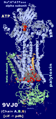 パリトキシン(palytoxin)が結合したNa+,K+-ATPアーゼ9vj0のChain A・B・GとPDBsumデータ