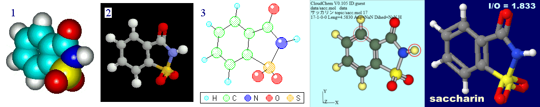 サッカリンのいろいろな分子モデル表示形式例 → 化学教育データの可視化の試み